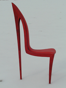 Objektstuhl "Stiletto"© in Ahorn natur oder schwarz gebeizt, Polsterung in Wurzelmaser, Edelstahl oder Leder nach Wahl