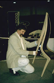 Luigi Colani begutachtet "Stiletto" IBO 2001-2009 Friedrichshafen Frickinger Herbstmarkt 2002-2008 Kölner Möbelmesse |